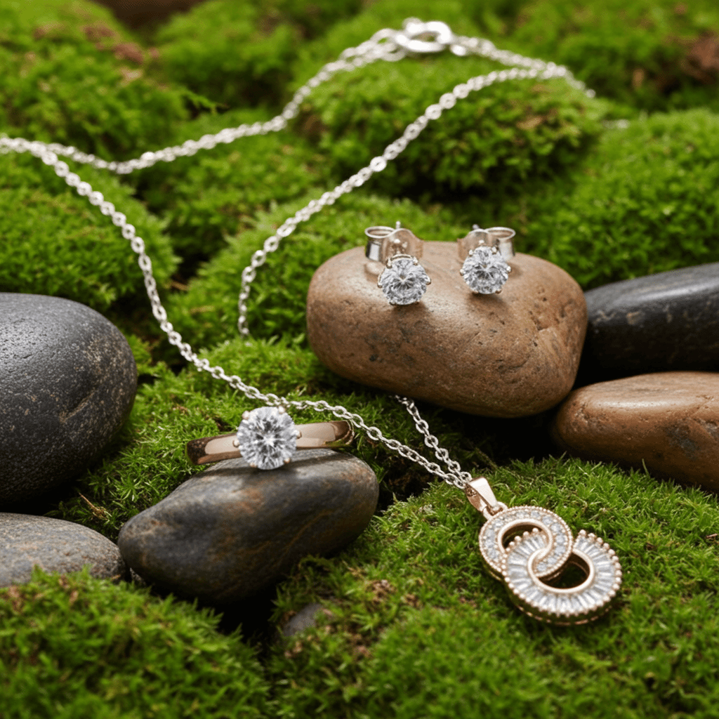 Tessara Rose Gold-Plated AD-Studded Interlocking Pendant Set with Ring