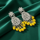 Add a touch of sophistication to your ensemble with our Turquoise Blue Kundan Dangle Earrings with Silver Finish -by Tessara