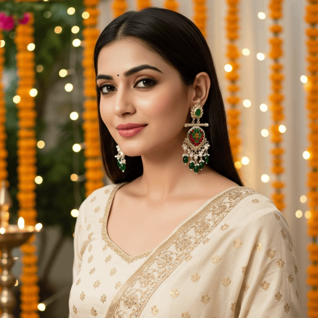 Crafted with intricate detailing and high-quality materials, these earrings seamlessly blend traditional charm with modern elegance—perfect for any special occasion.