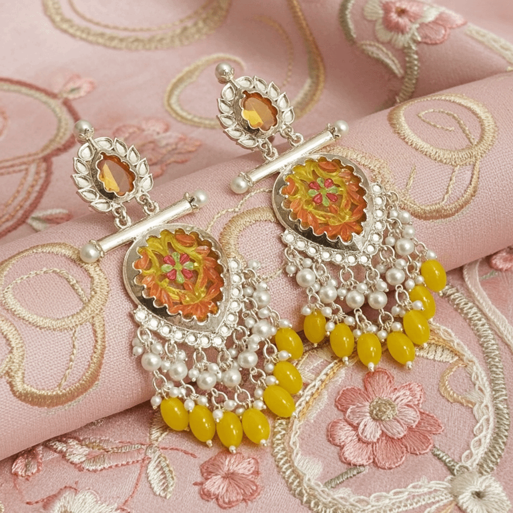 Tessara Silver-Plated Multicolor Meenakari Earrings with Yellow Beaded