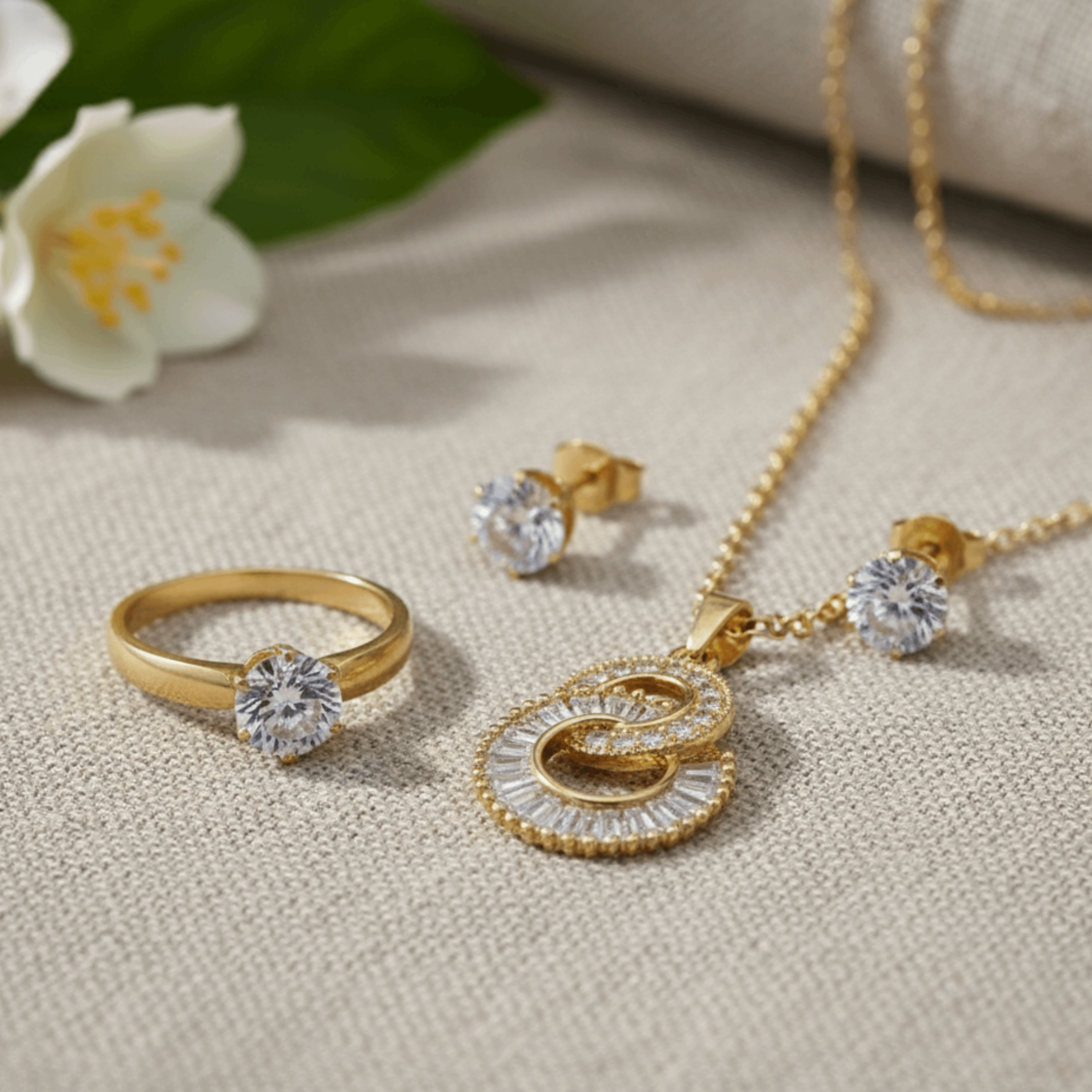 Tessara Gold-Plated Interlocked Zirconia Pendant Set
