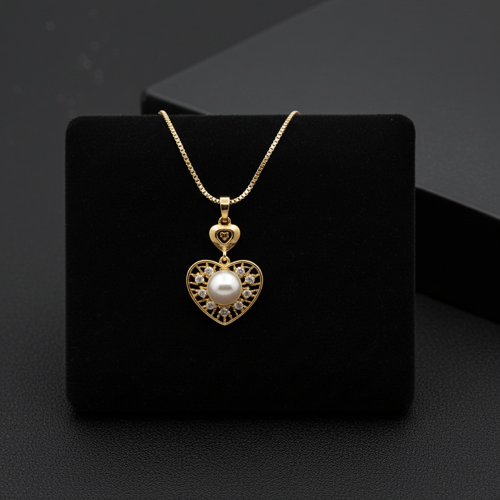Express your affection with our exquisite Double Heart Pearl Pendant. Beautifully gold-plated, this piece features a lustrous pearl nestled within a sparkling crystal heart, creating a timeless symbol of love and elegance.