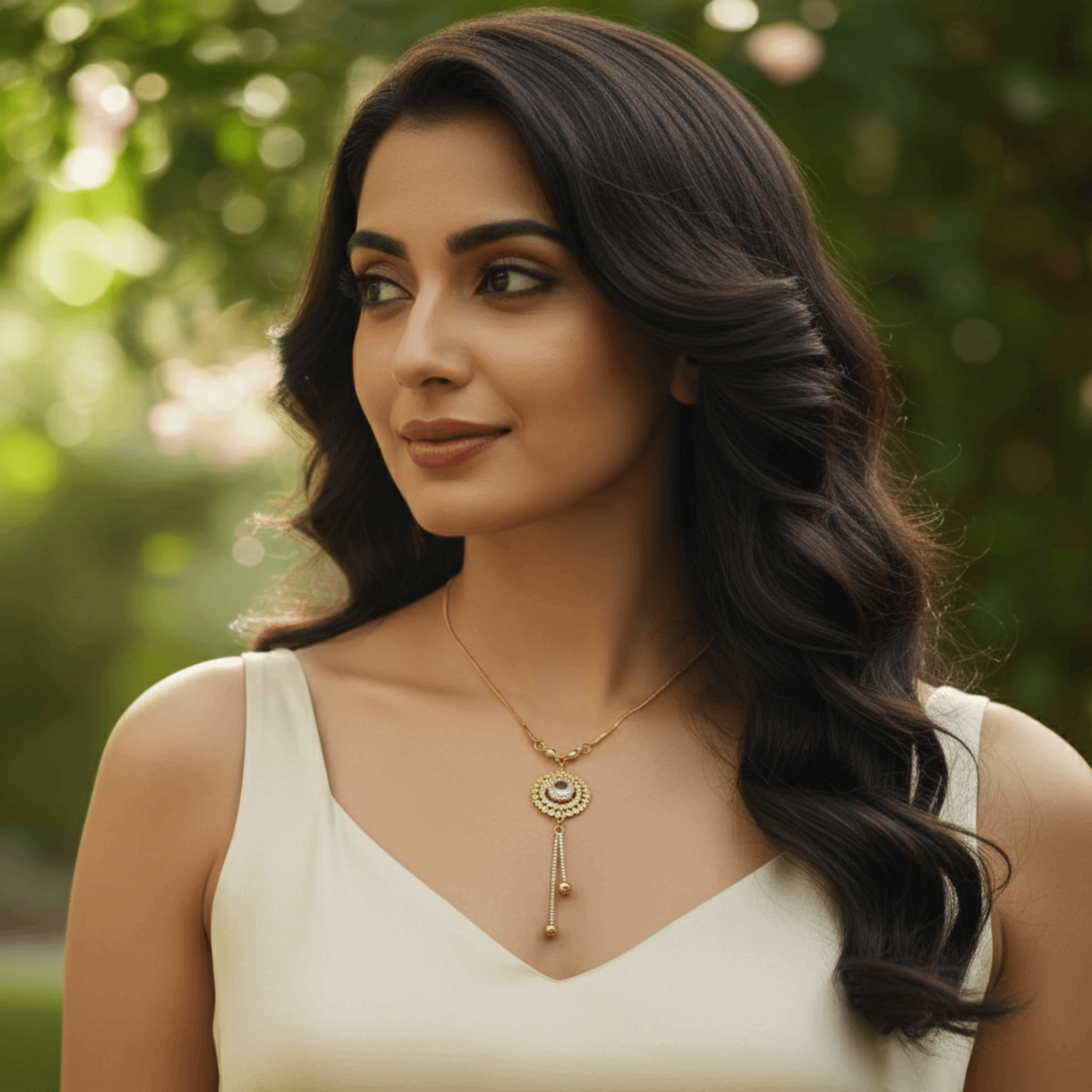 Illuminate your look with our stunning Rose Pink Tassel Pendant. This exquisite gold-plated piece features a captivating pink stone at its heart, framed by a halo of sparkling crystals and finished with delicate dangling tassels for a touch of feminine glamour.