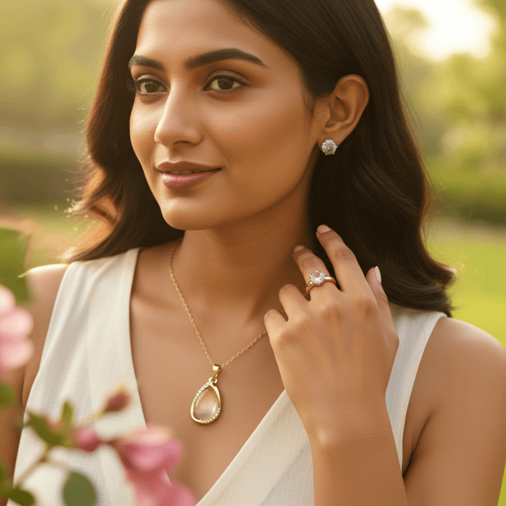 • In the Box: 1 Pendant with Chain, 1 Pair of Earrings, 1 Ring
