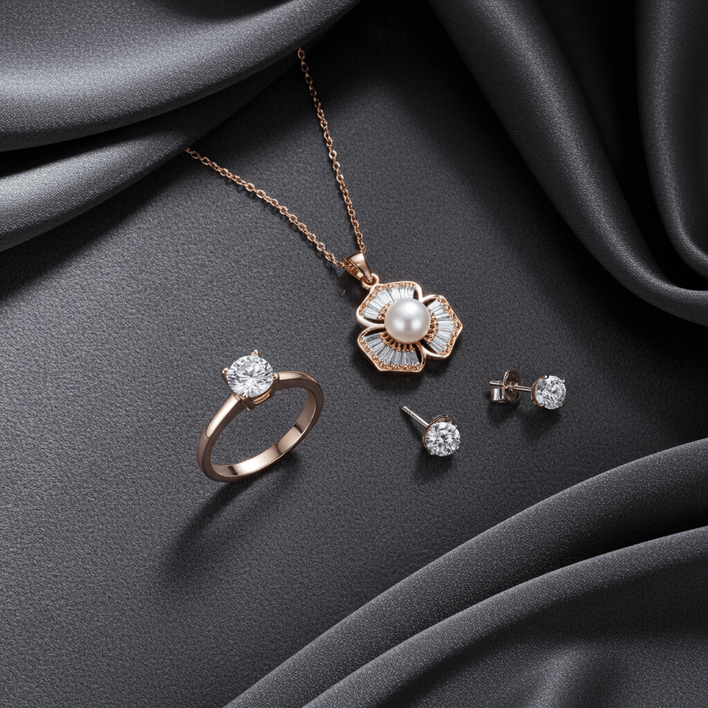 ✨ Rose Gold Radiance with this Tessara Pendant Set!