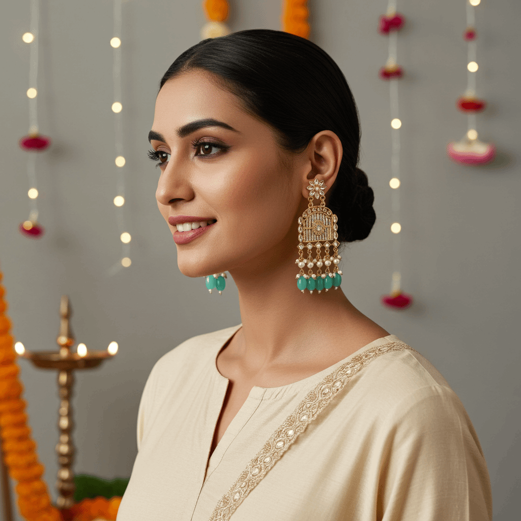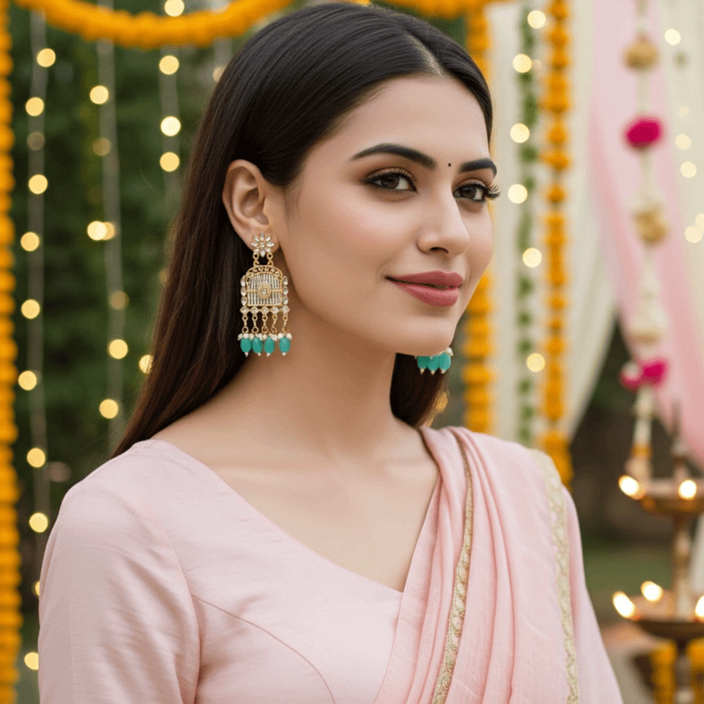 Crafted with intricate detailing and high-quality materials, these earrings seamlessly blend traditional charm with modern elegance—perfect for any special occasion.