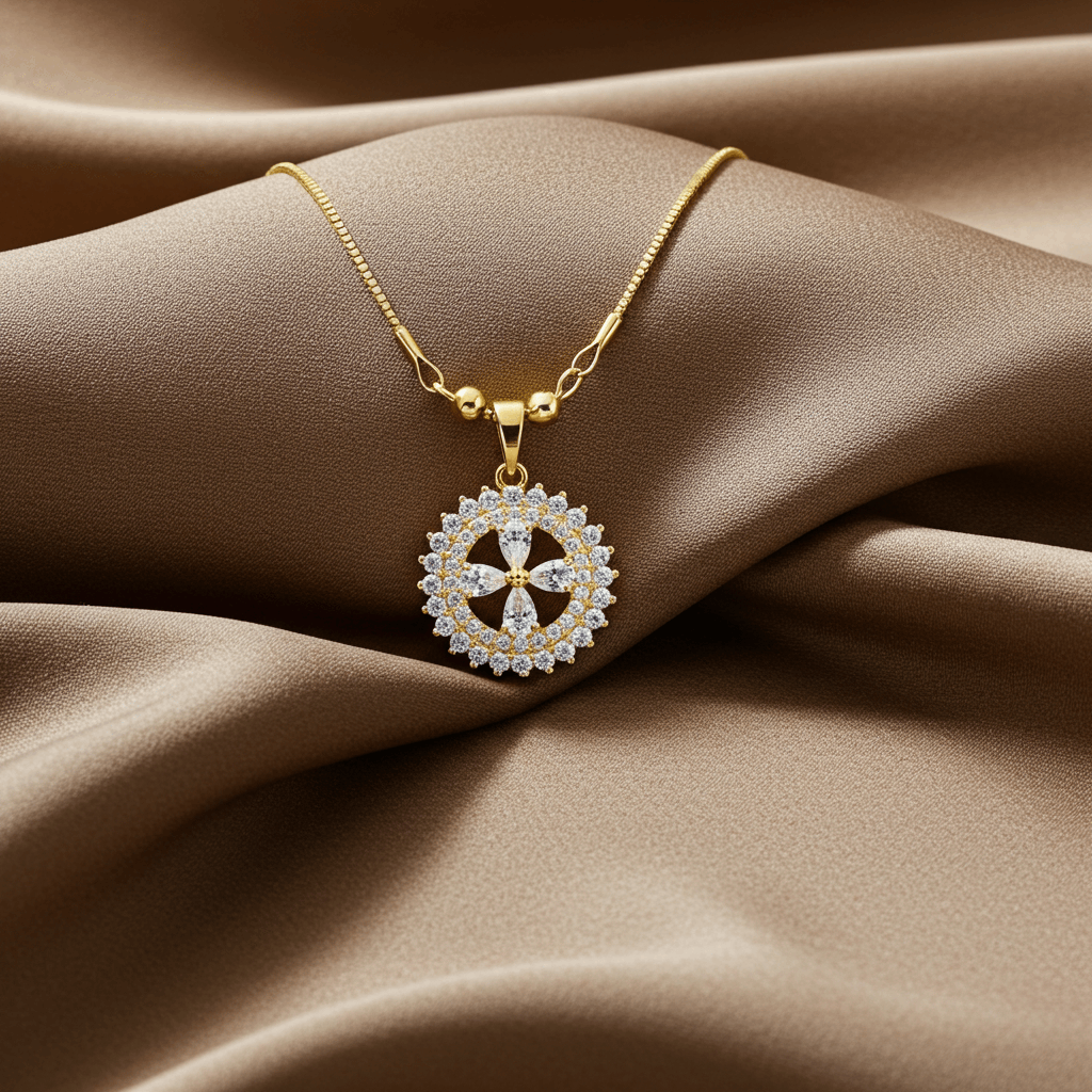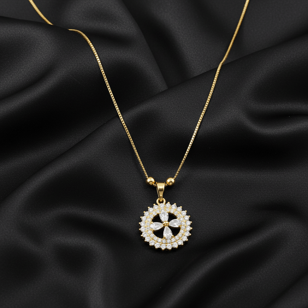 Tessara Gold-Plated White AD-Studded Floral Halo Pendant