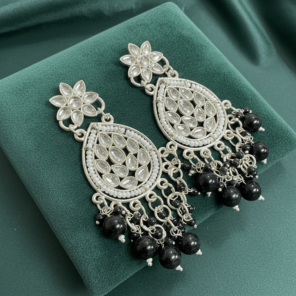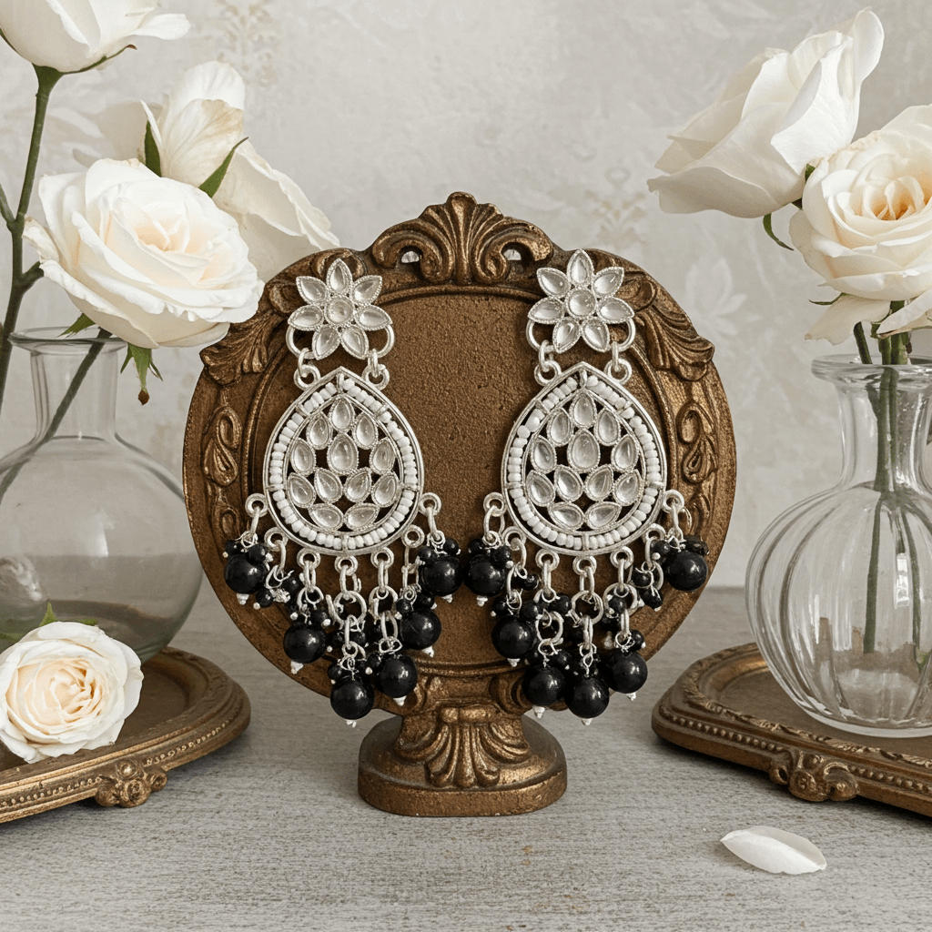 Tessara Silver-Plated Kundan Dangler Earrings with Black Beaded Tassels