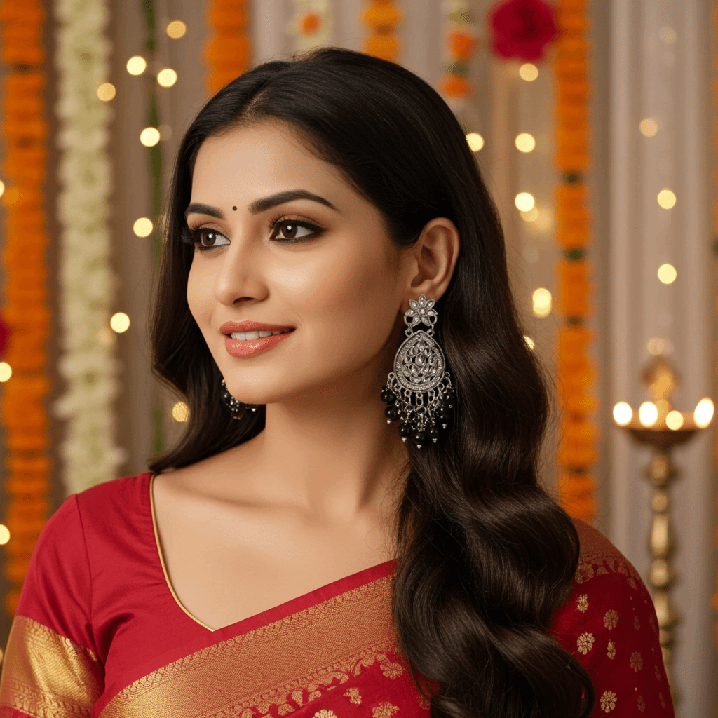 Crafted with intricate detailing and high-quality materials, these earrings seamlessly blend traditional charm with modern elegance—perfect for any special occasion.