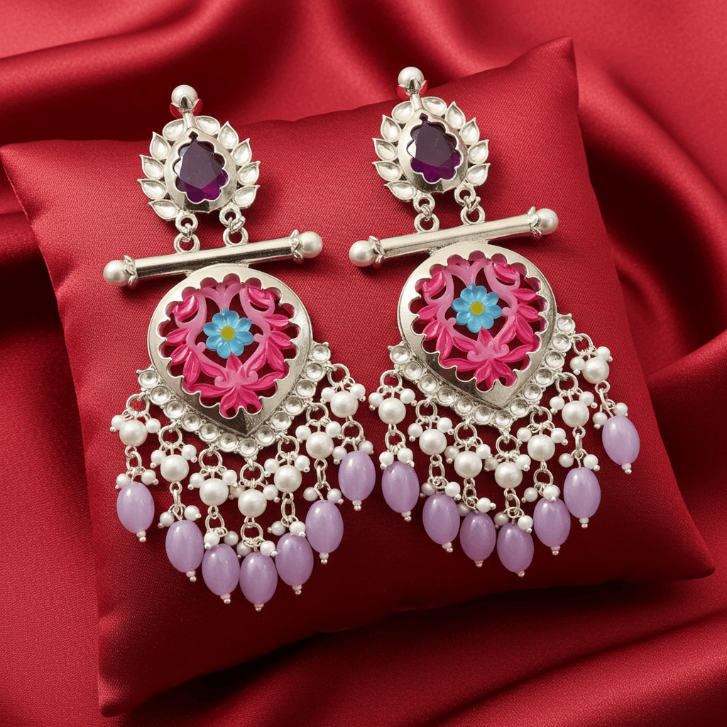 Tessara Silver-Plated Multicolor Meenakari Earrings with Lavender Beaded Tassels