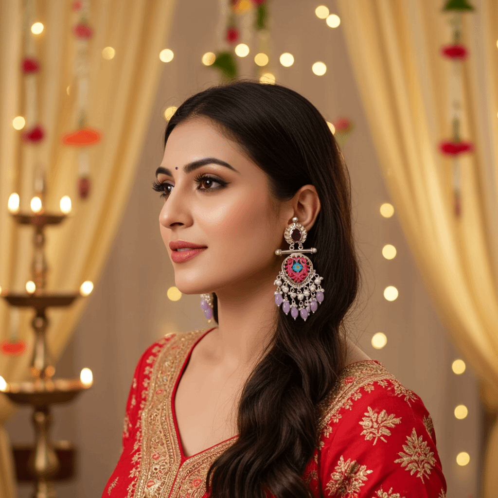 Crafted with intricate detailing and high-quality materials, these earrings seamlessly blend traditional charm with modern elegance—perfect for any special occasion.