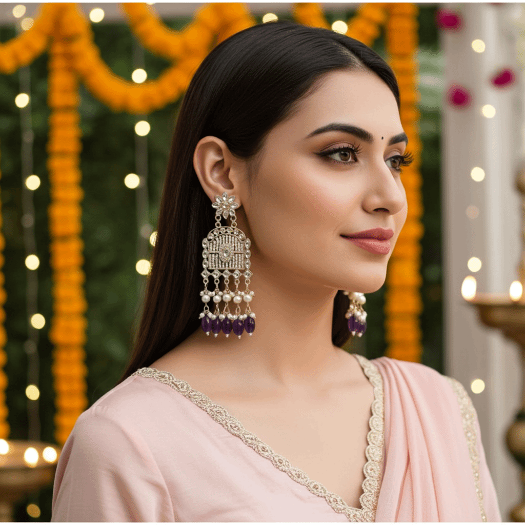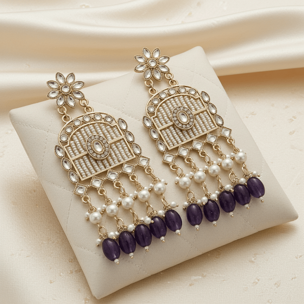 Crafted with intricate detailing and high-quality materials, these earrings seamlessly blend traditional charm with modern elegance—perfect for any special occasion.
